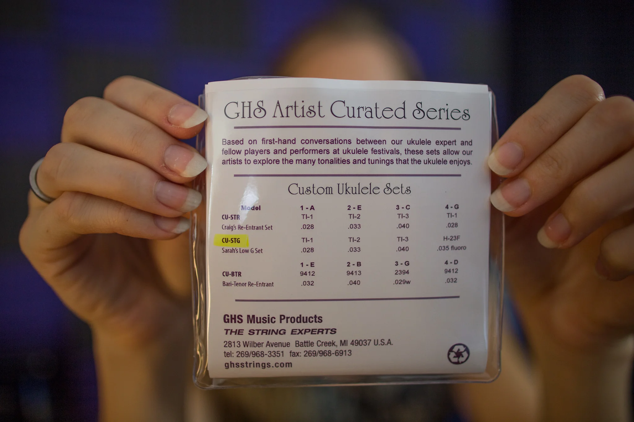 Sarah and I have been working with the amazing crew at GHS Strings to create some custom strings for us. We have nailed down 3 different sets, all made for tenor 'ukuleles. There is a reentrant C6 (standard) set, a low G set and a reentrant baritone set (DGBE) made for a tenor.